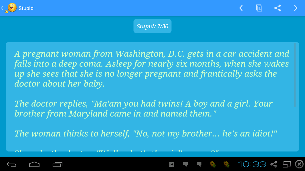 Short Funny Story Jokes In English / Short funny story Jokes / As she lays her beloved pet duck on the table, the vet puts his stethoscope to the bird's chest and listens carefully.. The major plus of short jokes is that they're easy to repeat from off the top of your head, meaning that the 50 gags below are perfect for pulling out the next time you're hanging around with your friends, entertaining your kid. 7 ten short english jokes; Below are 48 of the best clean jokes. The quiet woman a splendid example of an oxymoron?; The only catch was the story had to include three subjects: